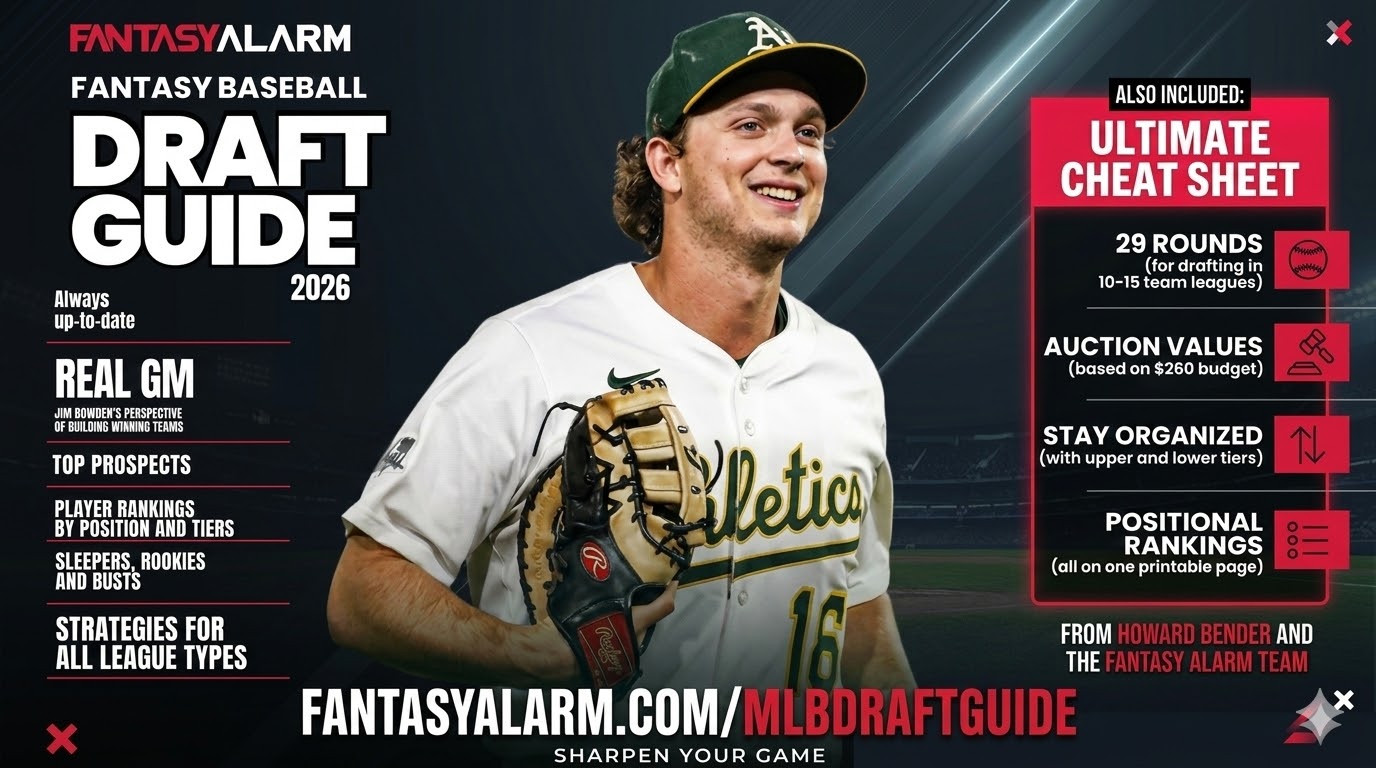 Get the Fantasy Alarm 2026 Fantasy Baseball Draft Guide + Cheat Sheet Buy it here.